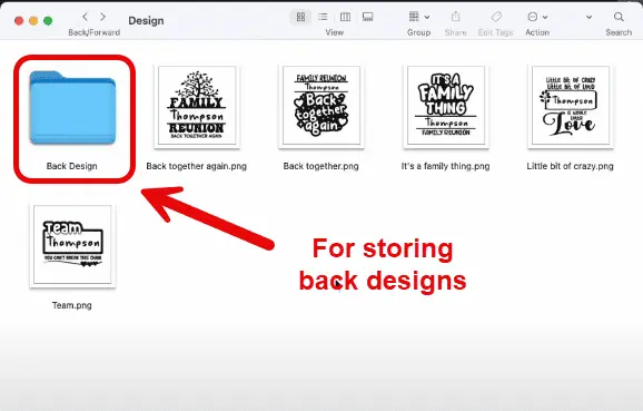 In the design folder, create a subfolder named “back design” and keep the back designs in this subfolder. Place front designs in the main “design” folder.