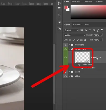Double-click and open the “artwork here” layer to find the “nested artwork here” layer.