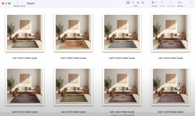 The plugin will automatically replace the rug smart object with each design. Wait for the process to complete.