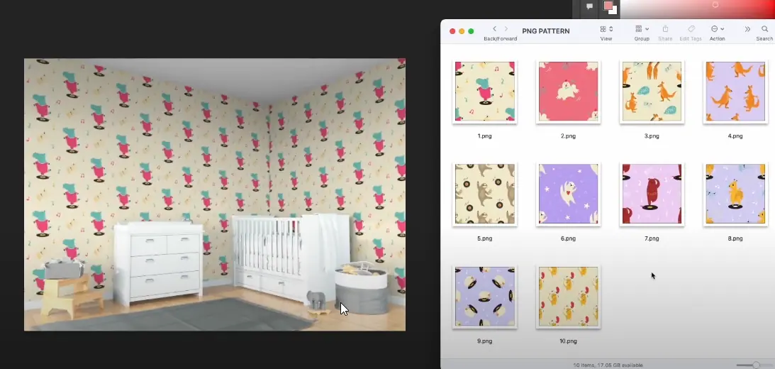 Open the Bulk Mockup plugin and click “Start Generating”. Watch as patterns are automatically applied across the wallpaper.