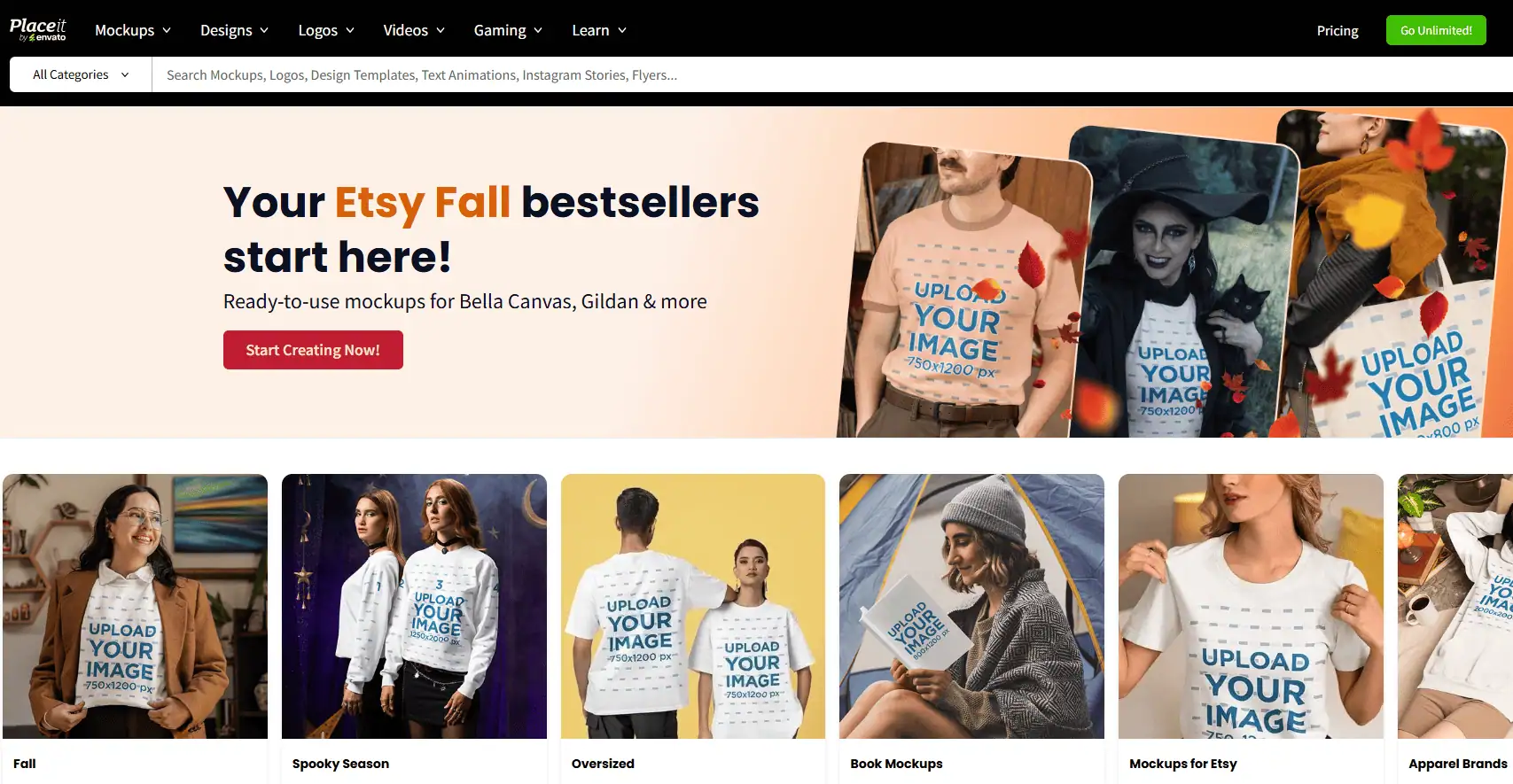 Placeit offers the largest library of lifestyle mockups specifically designed for Etsy sellers. With over 40,000 templates, it’s particularly strong for wall art presentations in realistic room settings. The platform’s drag-and-drop interface makes it accessible for sellers without design experience, though the subscription cost can add up for high-volume users.
