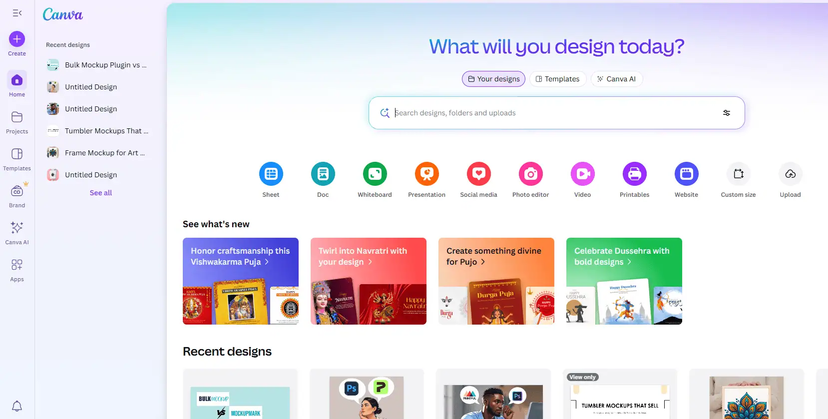 Canva serves as both a design tool and mockup generator, making it popular among sellers who want to handle their entire creative workflow in one platform. While not as sophisticated as dedicated mockup tools, it offers convenience and accessibility that appeals to beginners in the AI art space.