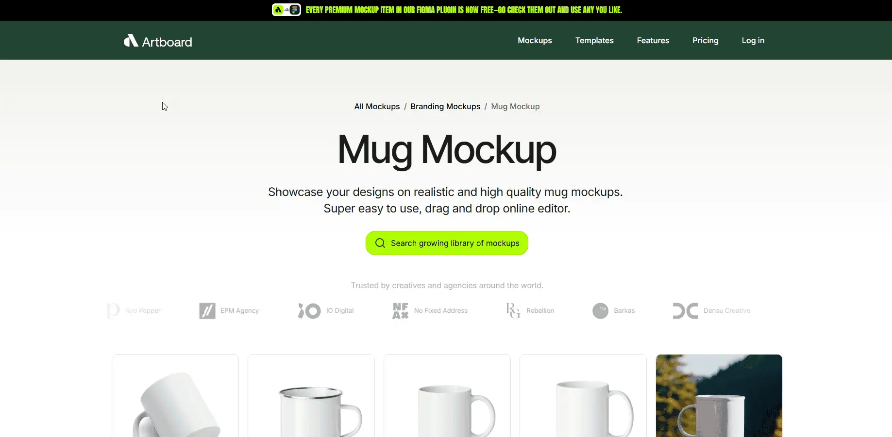 Artboard Studio | Professional branding & mockups | Drag-and-drop generator, realistic effects, Figma plugin support | Free & Paid | Free (limited), Paid from $12/mo |