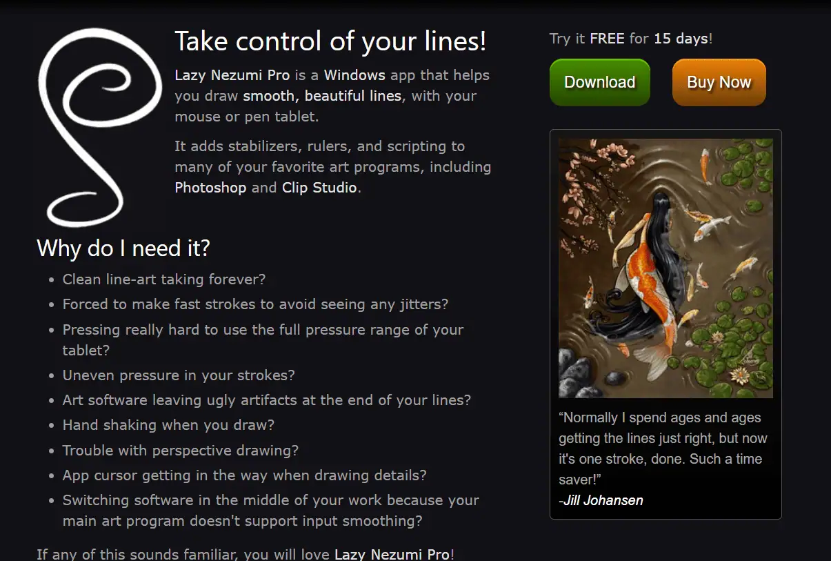 Many illustrators swear by it, preferring it over Photoshop’s own “Smoothing” setting. And comic artists use its pressure processing features to get consistent tapering. Lazy Nezumi also has cool perspective tools. You can set vanishing points, and it will constrain your strokes to perspective lines.