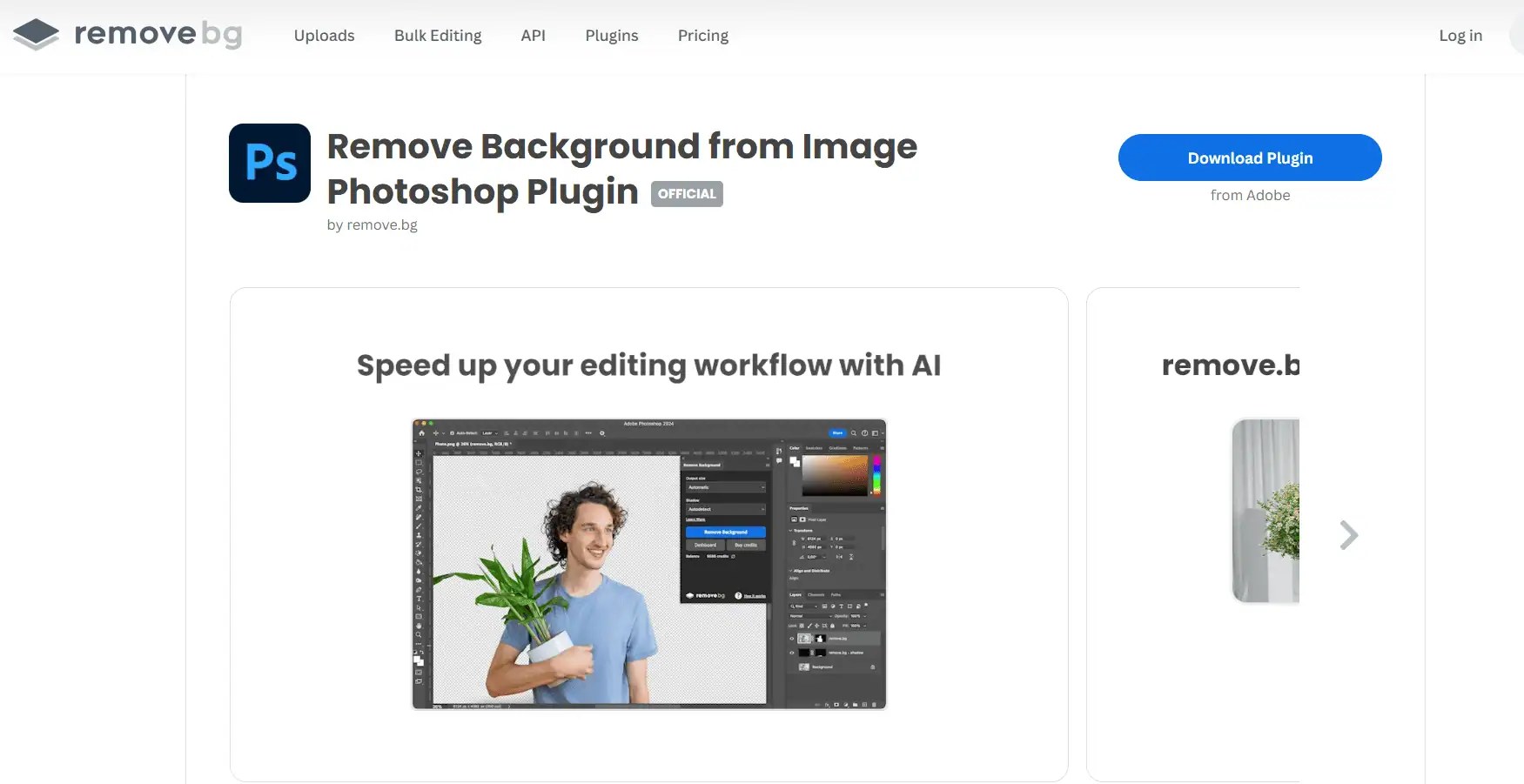 The Remove.bg plugin uses AI to remove backgrounds from images in a single click.