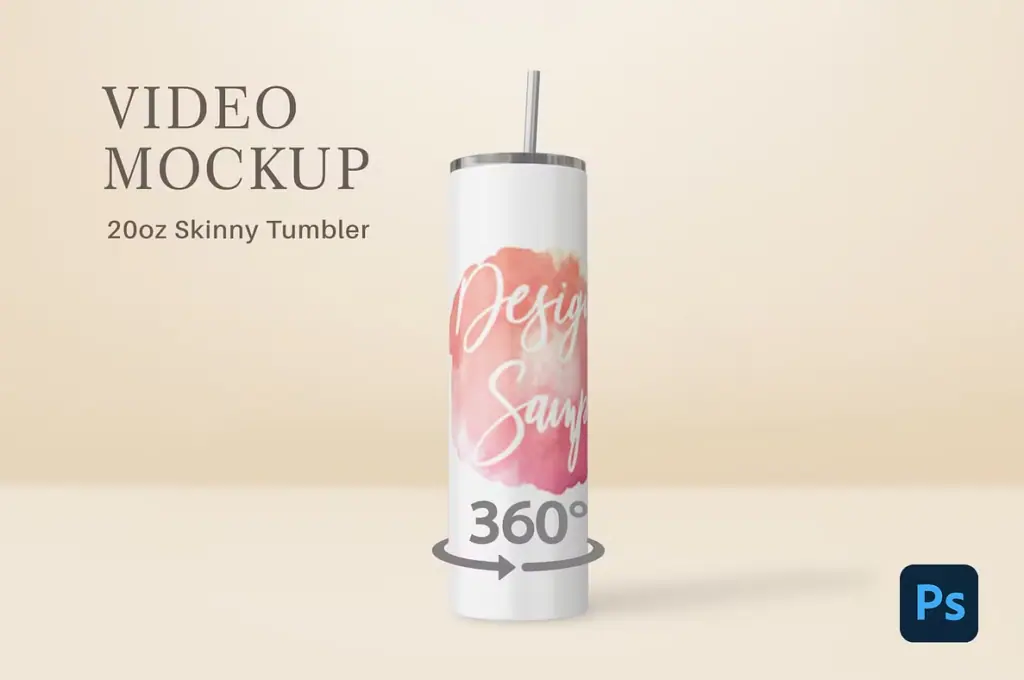 This video tumbler mockup is an animated 360 rotating video mockup PSD which can be used with BulkMockup to generate hundreds of video mockups in an automated fashion.