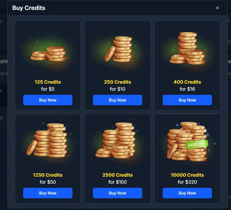 These prices add up. The Pro plan costs $456/year, while Pro Plus costs $900/year. That’s 6-12 times more expensive than Bulk Mockup, and you still have batch limits even on the highest tier. Apart from subscription tiers, you can buy credits, but they are not cheap.