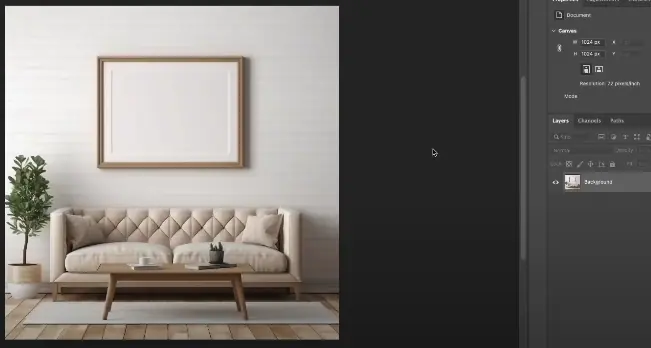 Create professional wall art mockup templates with Midjourney and transform them in Photoshop. Turn your designs into realistic interior visualizations!