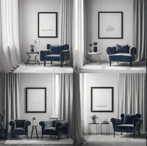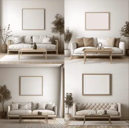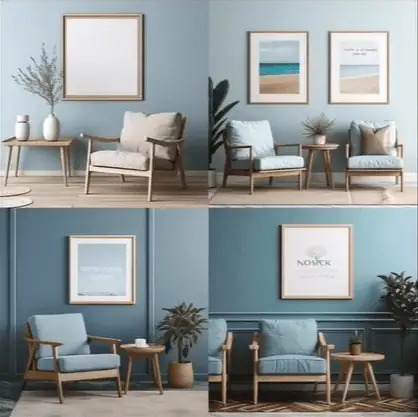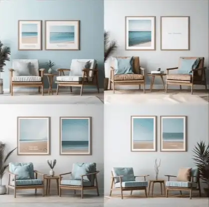 With Midjourney, you can generate engaging mockups featuring framed artwork on walls. These mockups can be used to: