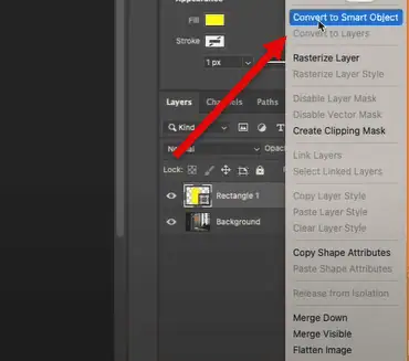 2. Right-click on the rectangle and convert it to a Smart Object.