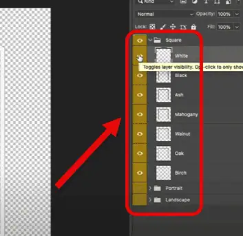 3. Choose the frame color layer (White, Black, Ash, Mahogany, Walnut, Oak, or Birch).