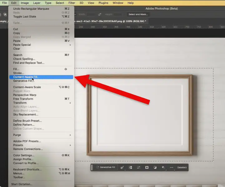 4. Use Content-Aware Fill or Generative Fill to remove the existing frame.