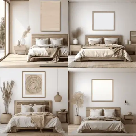 You can further adjust the variations by rewriting the prompts. For instance, if you want a cozy bedroom interior for wall art mockups, adjust the prompts accordingly. Here is what I got as the prompt adjustment result.