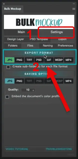 Go into Settings and pick your preferred export format (e.g. JPG, PNG). You can also enable automatic subfolder creation to keep files organized by template or design.