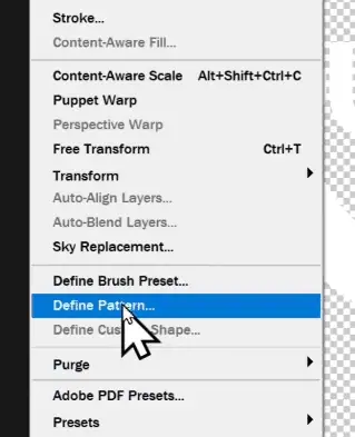 Open your watermark logo in Photoshop. Go to Edit → Define Pattern, name it (e.g., “Watermark”), and click OK.