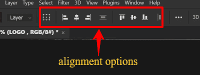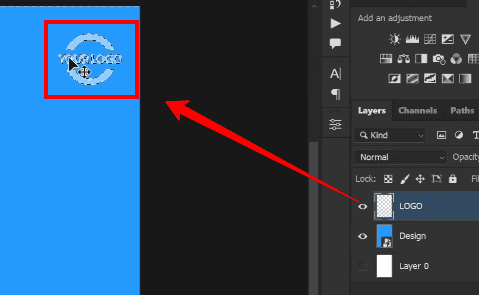 Select the background layer and then click on your logo layer. Use alignment tools to position it — top-left, bottom-right, or center.