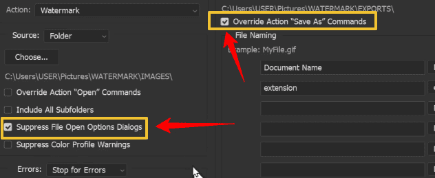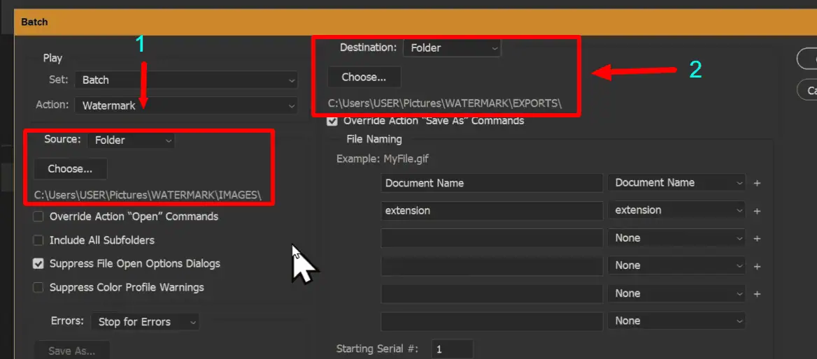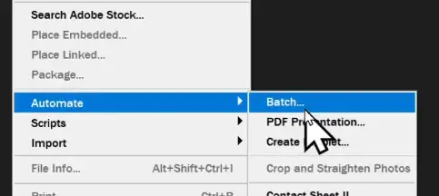 Then, go to File → Automate → Batch. Choose your Action Set and Watermark Action.
