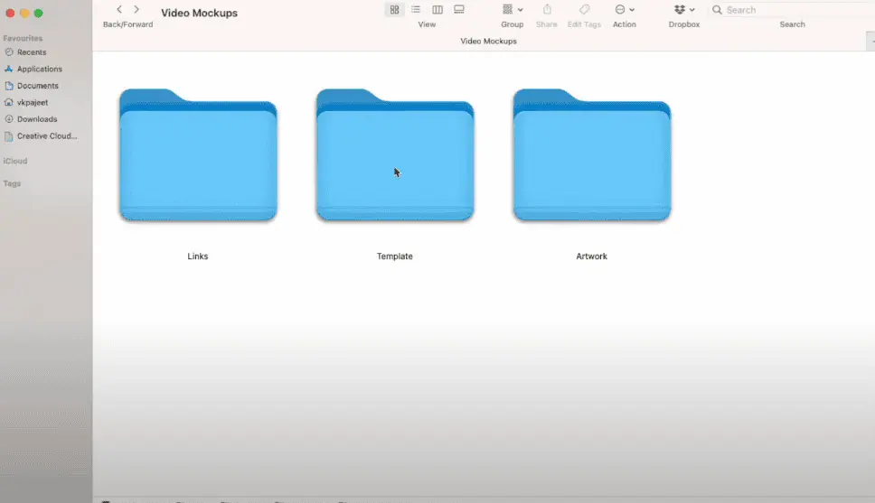 We need to create 3 folder. First is where we keep the video template. Then second folder is where we keep all the artwork and another “Export” folder where all the finished video mockups will be rendered.