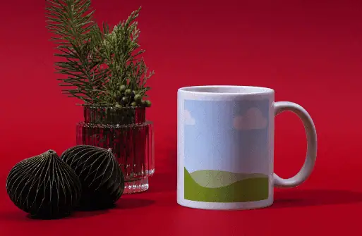 Don’t use one template for all items. For example, if you sell 10 mug designs, vary the setting: one on a kitchen counter, one on a cozy shelf, one on a desk. Take this image as an example.
