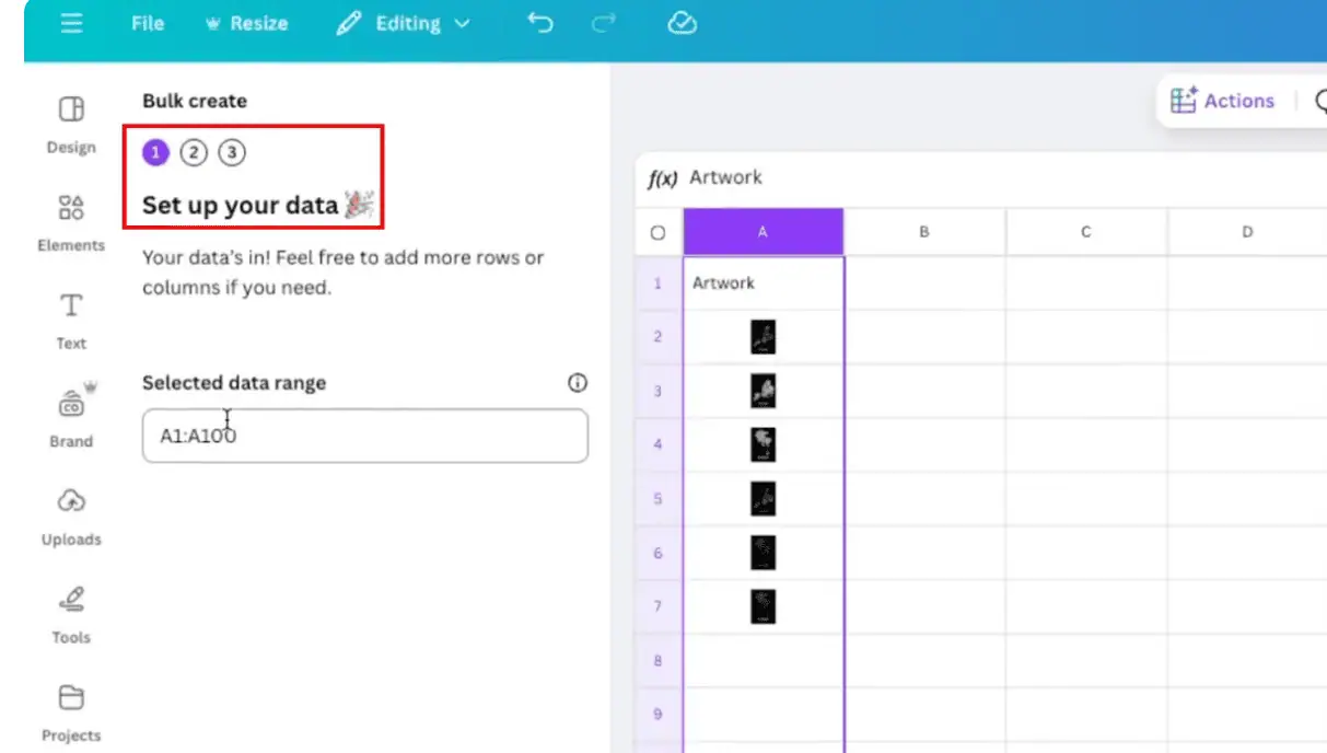 • Canva will auto-generate one new design set per row.