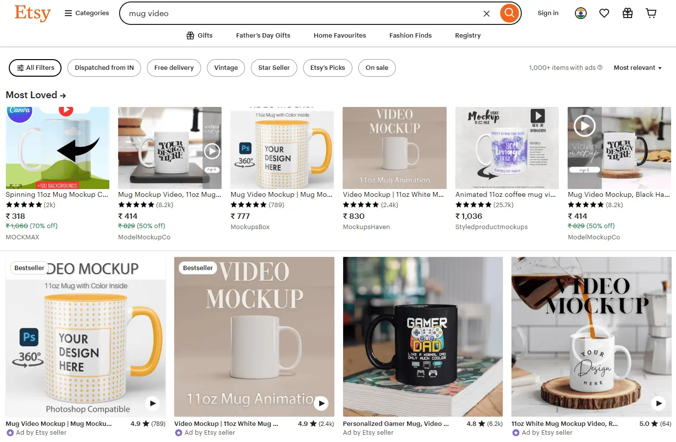 You can go to Etsy or Creative Market and search for specific templates. For instance, I searched for mug video templates and got these as a result.