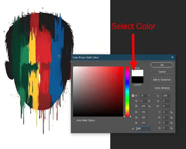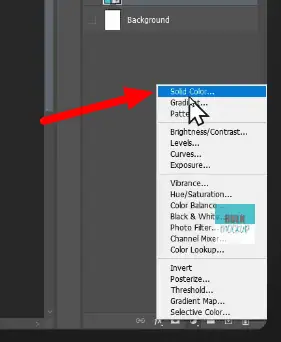 Go to the Adjustment Layer option in the right corner of your Photoshop Window. Select ‘Solid Color’.