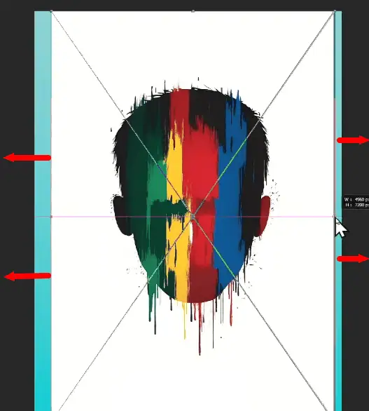 To fill the negative space, hold Shift on your keyboard and drag the artwork to meet the frame ends.