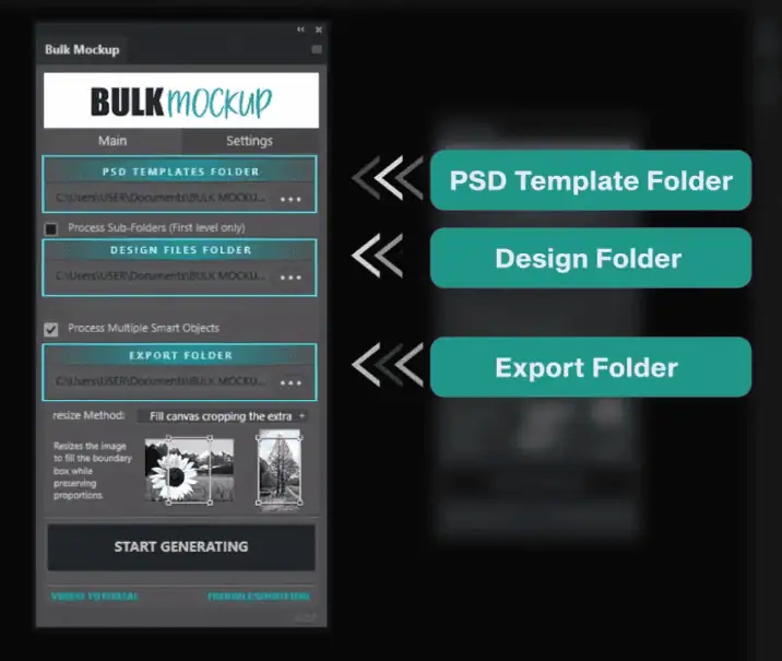 • Automate Resizing and Mockups with Bulk Mockup Plugin.