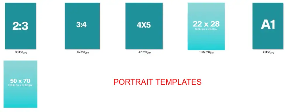 For this demo, we will use the portrait aspect ratio templates for resizing wall art designs. Download and save them in a folder named ‘Templates’.