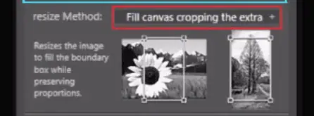 Go to the resize method section below the export folder option. Select the ‘Fit canvas cropping the extra’ option from the drop-down menu.