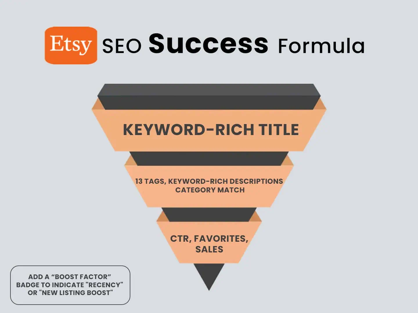 Etsy prioritizes listings based on relevance, conversion rate, customer feedback, and listing quality. The more aligned your listings are with what people are actively searching for—and the more they convert—the more visibility you’ll get in search results.