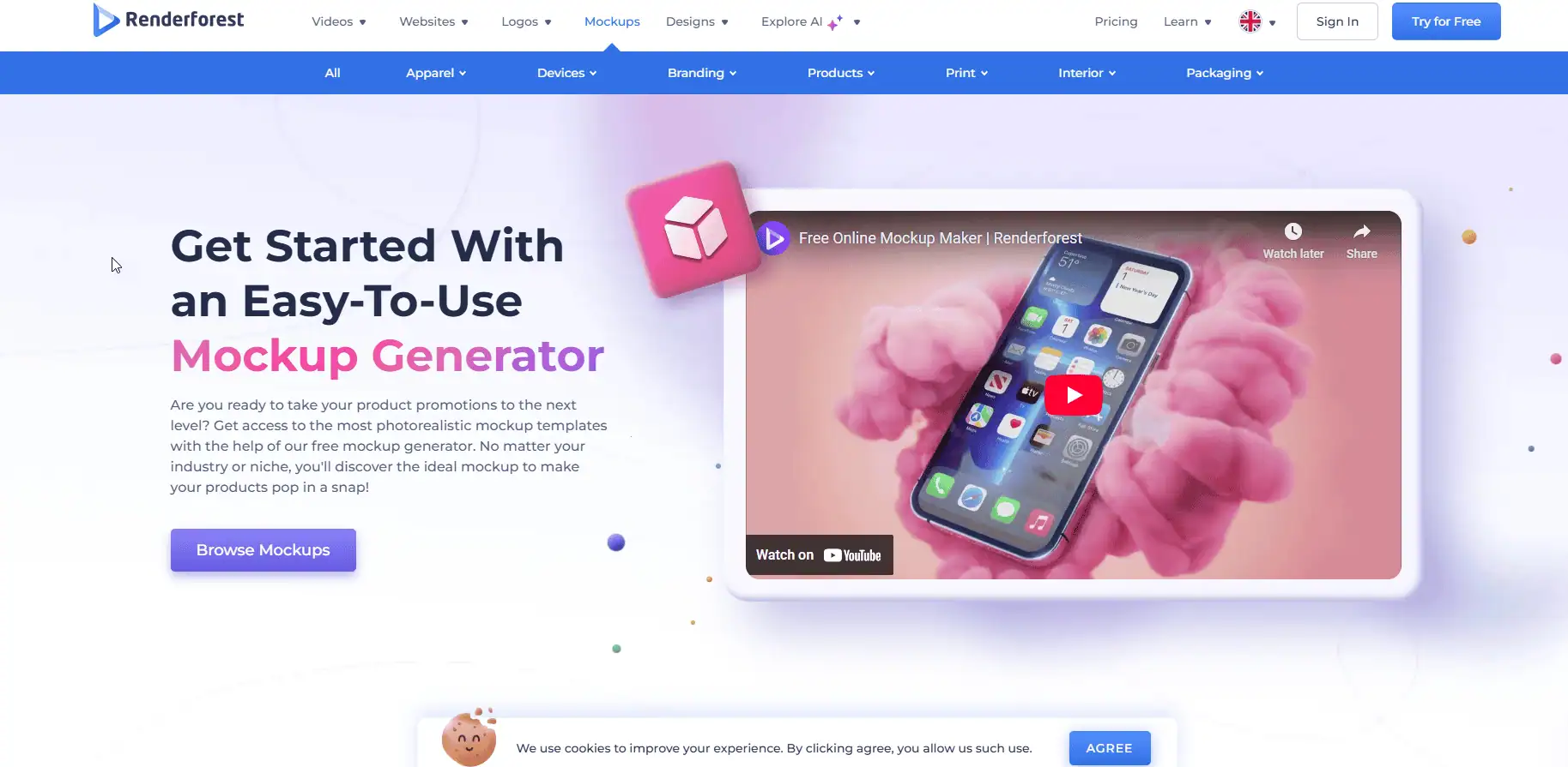 Renderforest | E-commerce & POD Mockup Videos | Yes (3 min video with watermark) | $9/month |