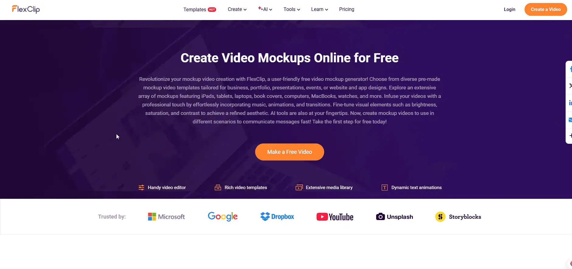 FlexClip is what you need for fast and polished video mockups. It’s not the most advanced editor, but for quick and effective presentations, it works well.