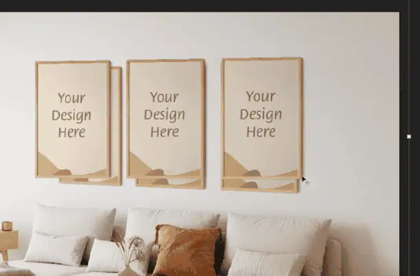 You can rotate, scale, or tweak layers further using Control + T if needed. Your normal smart object wall art template is now ready for easy editing and bulk mockup use.