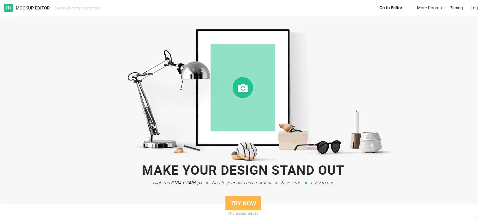 If you want more control over backgrounds and props, Mockup Editor offers an intuitive wall art mockup creation platform.