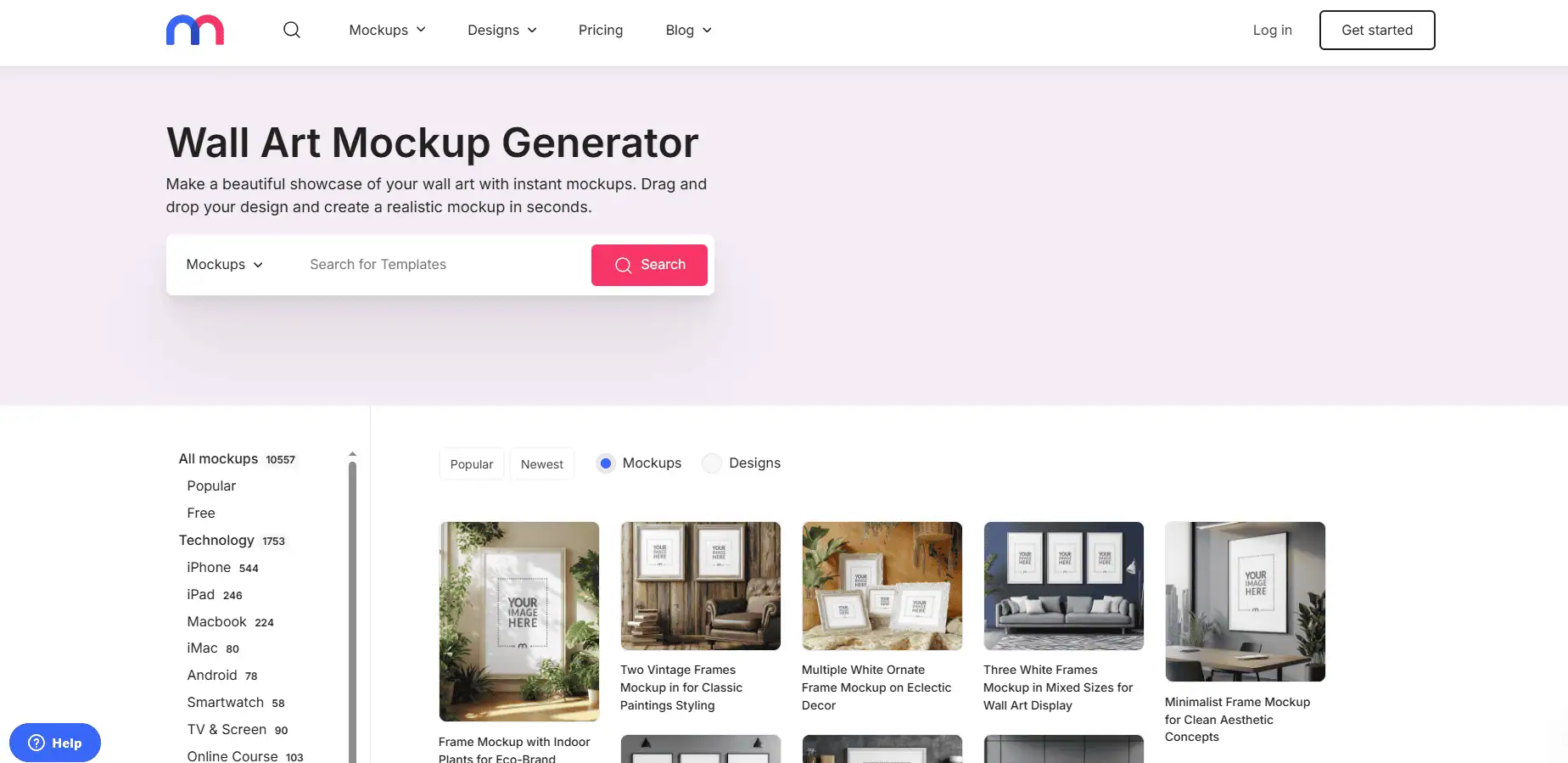 Mediamodifier offers a large library of framed art templates ideal for creating lifestyle-focused mockups.