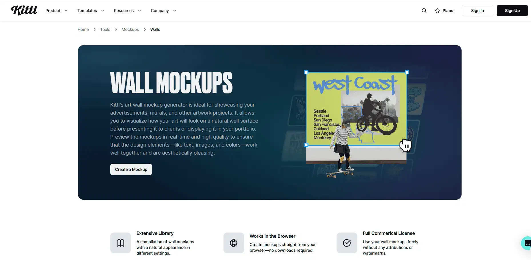 Kittl has mockup templates that look like architectural walls. This web tool is ideal for wall artists and designers. Uploading my design was easy, and I could adjust its size and position anywhere on the virtual wall.