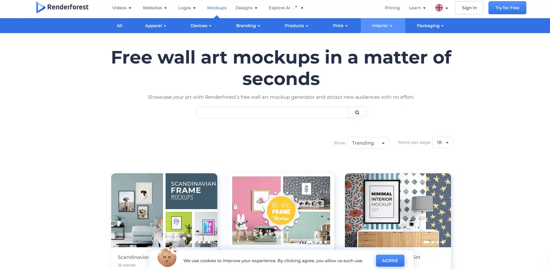 Renderforest made it easy for me to create high-quality wall art mockups for my projects. I could showcase my designs in realistic or abstract interior settings and choose from dozens of layouts.