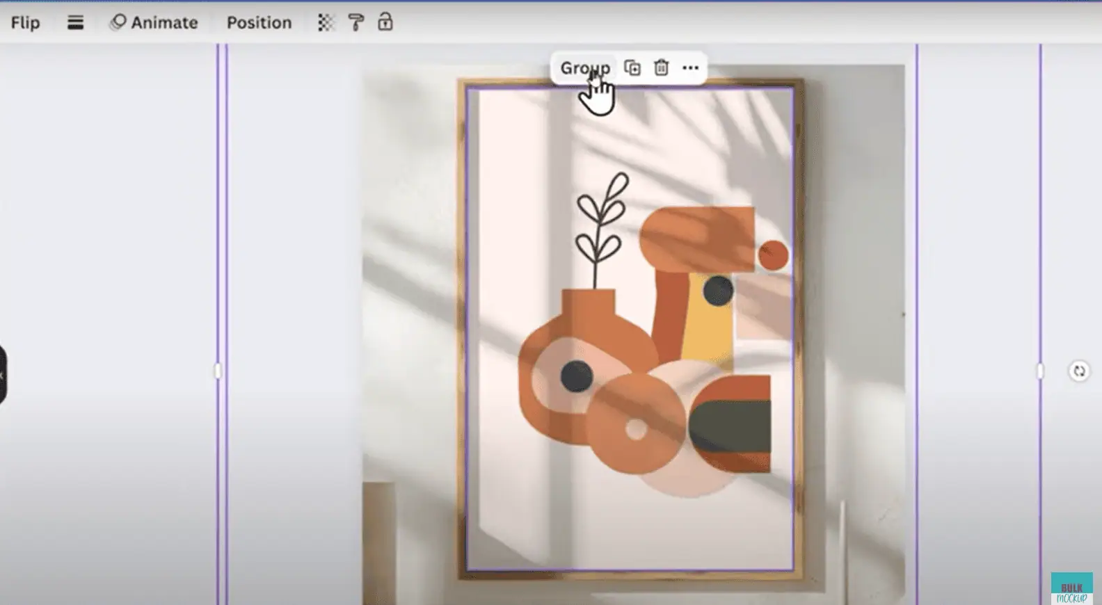 - Click “Group” to combine all elements. Grouping is crucial as it ensures all elements move together during animations.